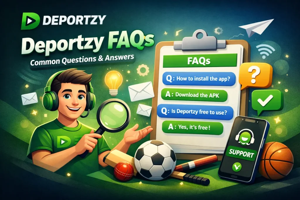 You can contact the Deportzy support team through the Contact page on the website for any questions, feedback, or technical help.